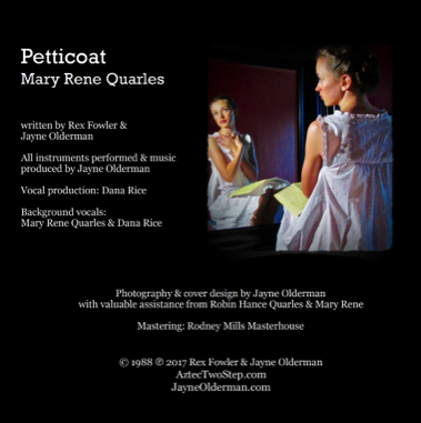 "Petticoat" is part of the Pop Trash catalog, but, since it is meant to be sung by a little girl, Rex and Jayne knew that this was a song tailor-made for one very special girl: Mary Rene Quarles.