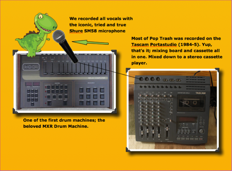 JOURNEY BACK WITH US TO THE "NEW SOUND" OF THE 80s.... to the dawn of the MXR drum machine with the BIG sounding pads; to the age of the Tascam Portastudio where homemade song demos and gloriously cheezy production ruled the songwriter's world. But not the Cheez Wizz or Velveeta kind of cheezy, more like a nice smoked gruyere. Welcome to Pop Trash...